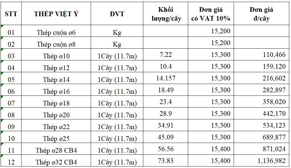 | 15 | Thép U120*65*6ly | VN | 80.4 | 12,900 | 1,037,160 |
