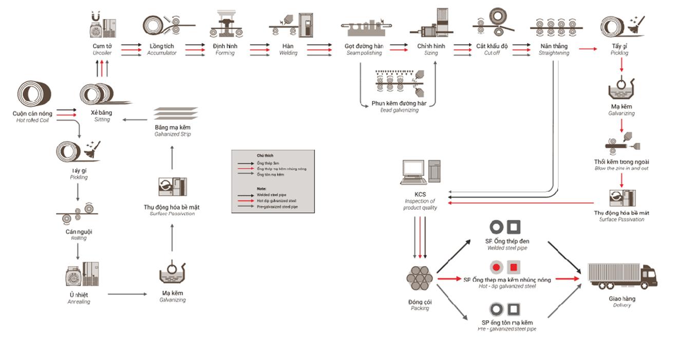 Với sự hỗ trợ của máy móc hiện đại, ống thép đen được sản xuất dưới nhiệt độ và áp suất cực cao, cho ra đời các sản phẩm tốt, chất lượng và năng suất lớn. Quy trình sản xuất ống thép đen công nghiệp được thực hiện qua các công đoạn:
