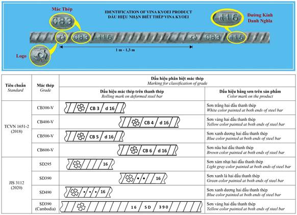 Để nhận biết đúng là thép gân của Vina Kyoei xin chú ý các điểm sau: