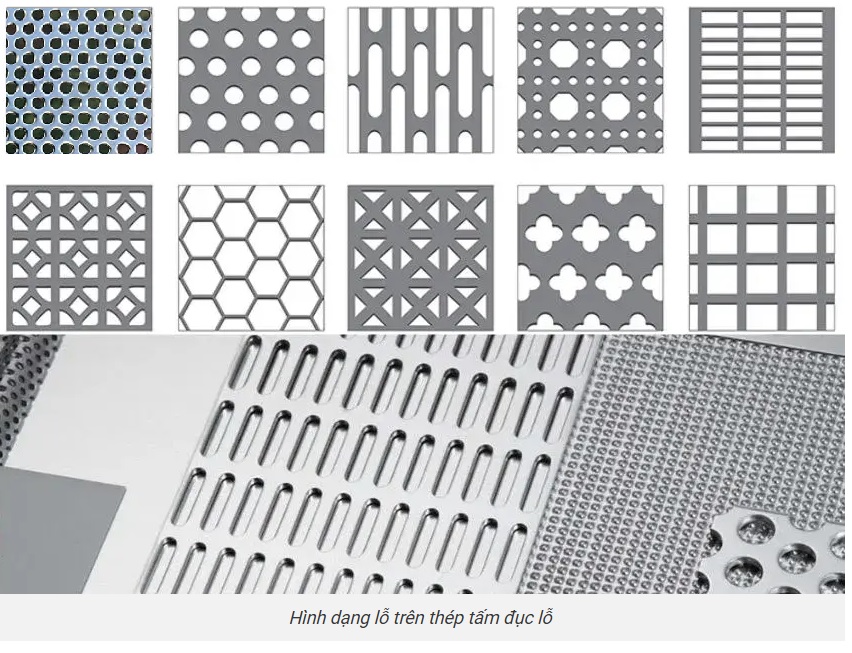 Các lỗ trên tấm thép này thường có hình tròn, hình vuông, hình chữ nhật, hình lục giác, hình hoa mai,… Hình dạng đa dạng giúp đáp ứng tốt nhu cầu của khách hàng. Cùng với đó, tấm thép đục lỗ được sản xuất dưới dạng nhúng nóng nên có bề mặt sáng bóng cùng độ chịu lực tốt. Vì vậy, nó được dùng vào nhiều ứng dụng đòi hỏi tính thẩm mỹ cao. Tấm lưới thép đục lỗ trang trí có tuổi thọ lên tới khoảng 15 – 20 năm.