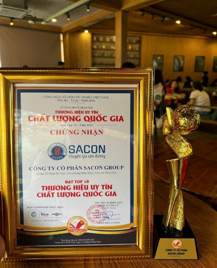 - Thương hiệu SACON lọt TOP 10 thương hiệu uy tín chất lượng Quốc gia năm 2024 được tổ chức tại TP Hồ Chí Minh và được truyền hình trực tiếp trên kênh HTV9