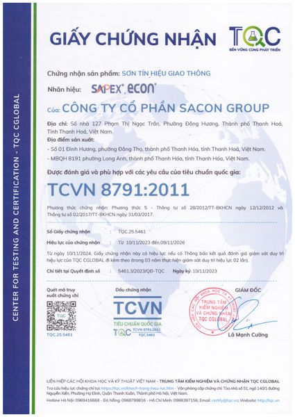 - Giấy chứng nhận sản phẩm nhãn hiệu SAPEX & ECON phù hợp với tiêu chuẩn Việt Nam TCVN8791:2011