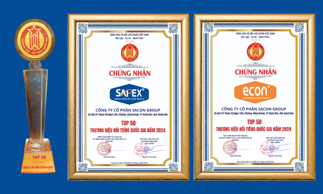 - Nhãn hiệu sơn SAPEX và ECON lọt TOP 50 thương hiệu nổi tiếng quốc gia năm 2024 được tổ chức tại nhà hát Quân đội, TP Hà Nội và được truyền hình trực tiếp trên kênh VTC6